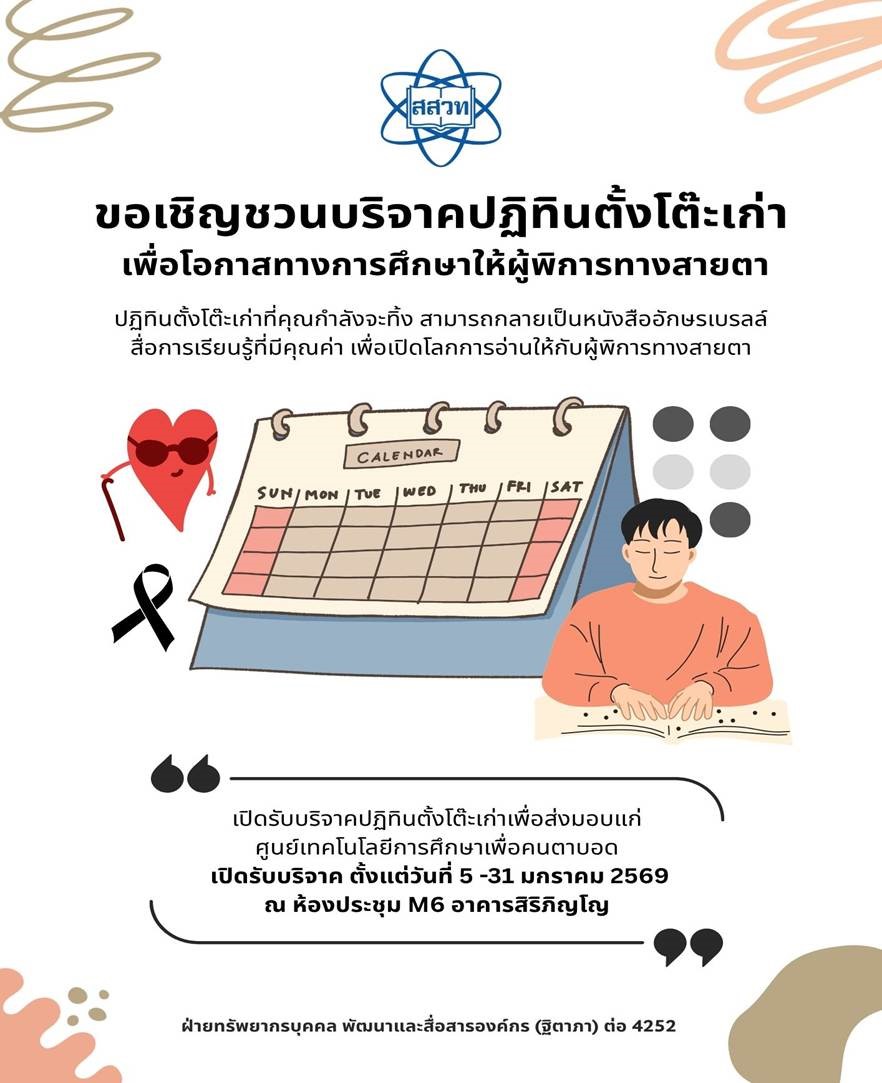 สสวท. ขอเชิญชวนทุกท่านมาร่วมส่งต่อความปรารถนาดีผ่านกิจกรรมบริจาคปฏิทินเก่า|