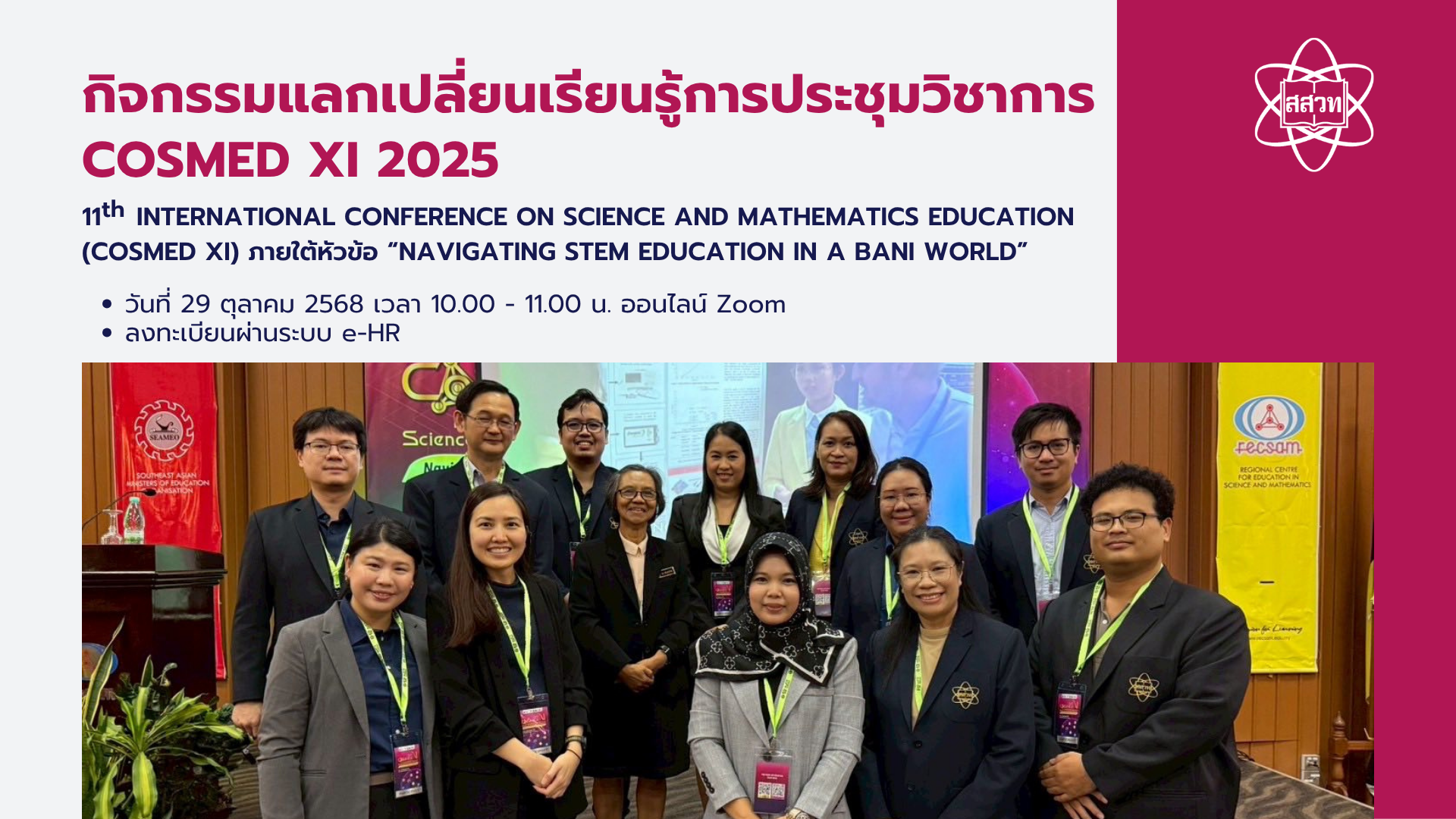 11th International Conference on Science and Mathematics Education หรือเรียกย่อว่า COSMED XI"